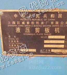 60000元(单价)出售3200折弯机,40吨压力机,3200剪板机各一台,机器为上海巨威生产,折弯机,压力机,剪板机是7成新、在位停用的机器,使用过程中无改装、无大修。目前折弯机,压力机,剪板机位于上海仓库存放,有意者电话联系。