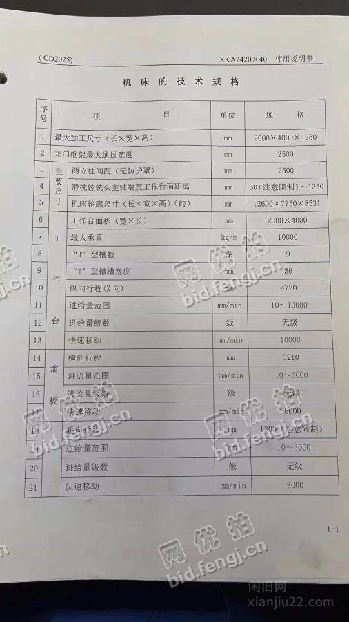 出售1台北京一机XKA2420*4数控龙门镗铣床,工作台面2000*4000mm,价格95万,有意者电话联系。