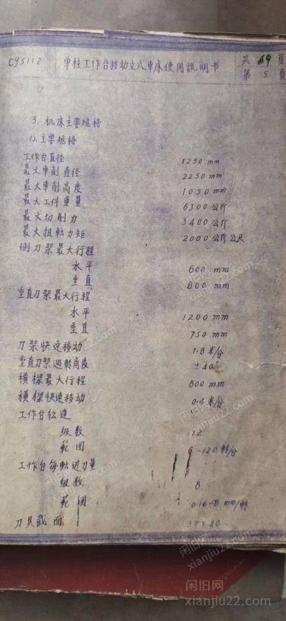 出售1台新乡产C5523移动立车,价格12万,有意者电话联系