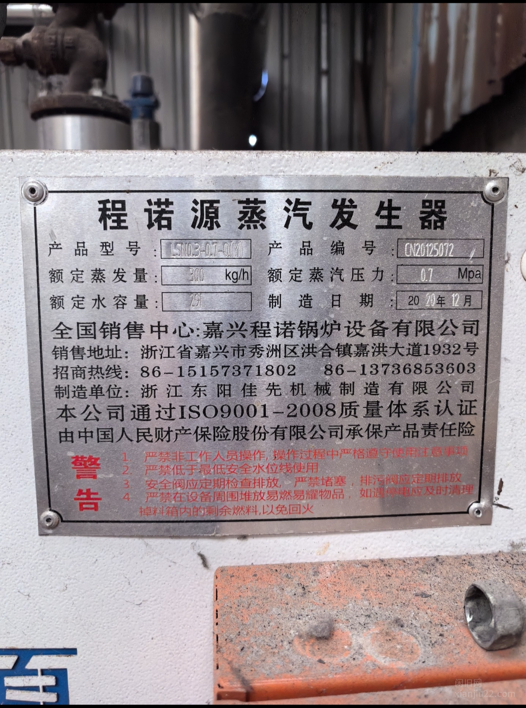 浙江嘉兴洗袜子厂0.3吨燃油蒸汽发生器、洗衣机、脱水机等,浙江嘉兴洗袜子厂出售工业洗衣机跟脱水机各一台,卖8500元,还有一台2020年12月300公斤的程诺源燃油蒸汽发生器,卖2万。 有意者电联!