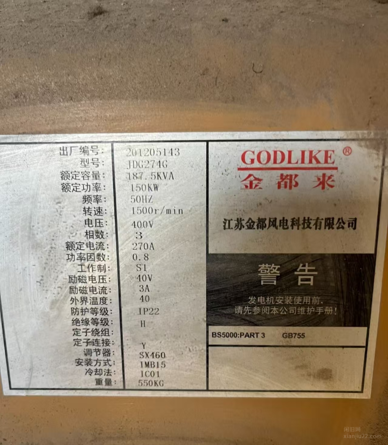 东风牌150kw发电机。一次没用,一直在吃土