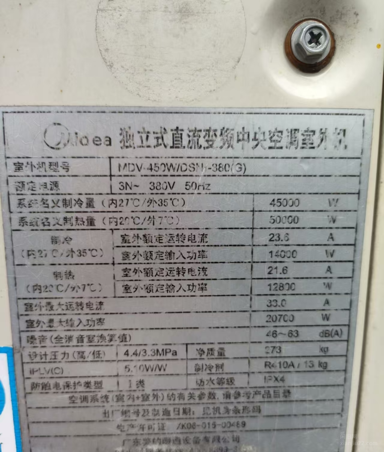 美的45000多联机外机,有用的上的老板拿去赚钱,也可配内机帮安装,价格另算!具体参数看铭牌