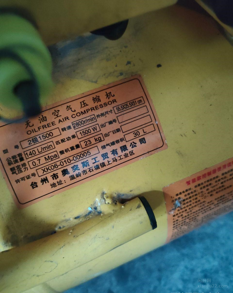 出手一台电脑版无油空气压缩机,30升容量,1500?W功率,运转良好,无需维修。成色有明显使用痕迹
