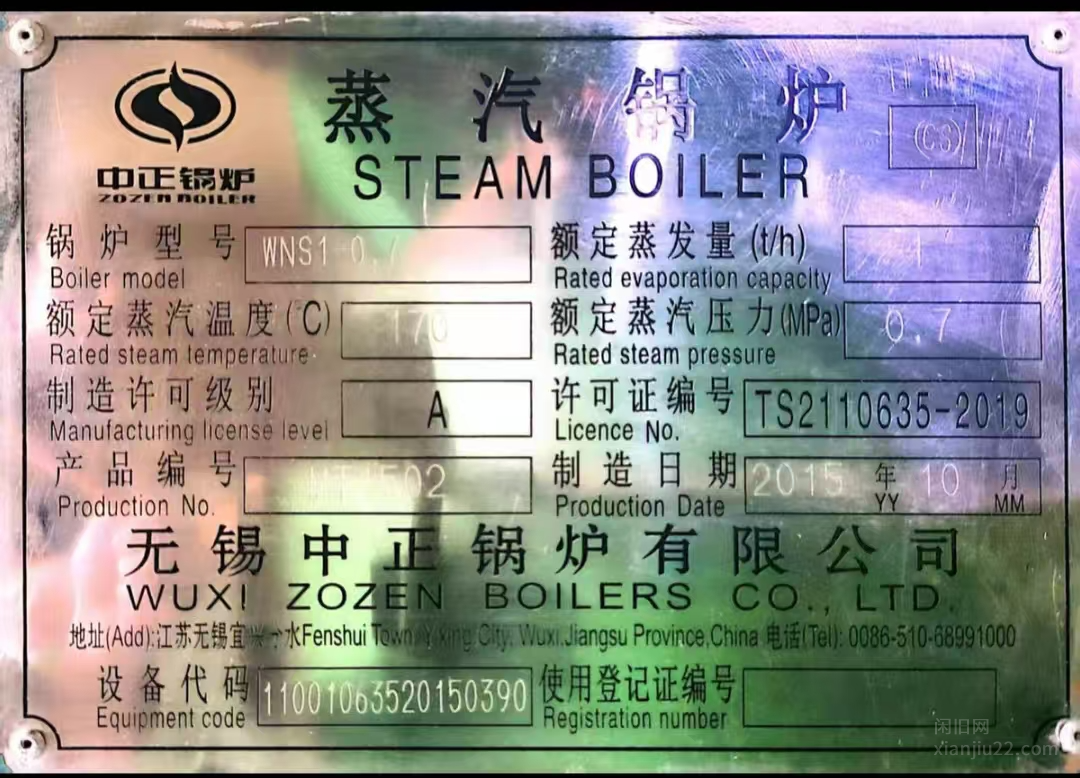 WNS1-0.7出售服装厂蒸汽锅炉,出售服装厂蒸汽锅炉,型号WNS1-0.7,买来没几年,设备成色良好,现因政府政策问题不得以出售,功能完好无维修。