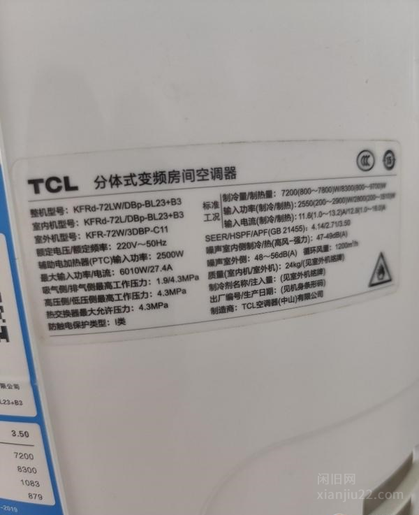 TCL空调3P柜(3级能耗),9成新以上,给钱就卖,电话联系