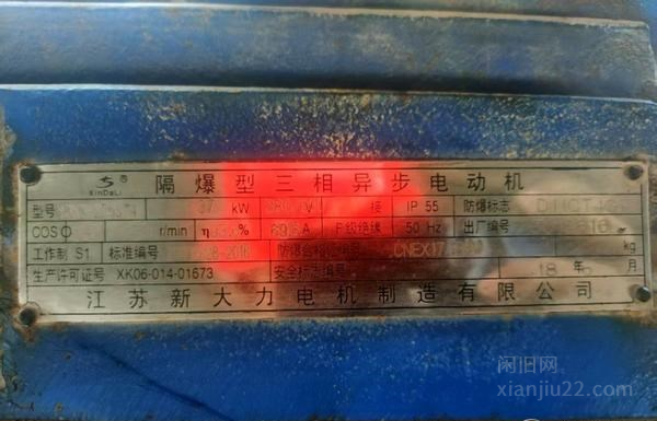 二手设备转让:离心通风机、37kw防爆电机、流量:13952-15455m3/h、余压:5244-4958Pa