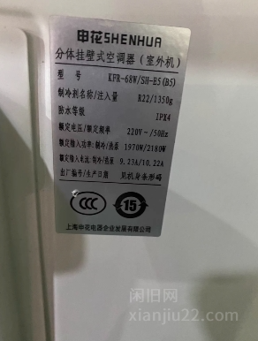 24年7月份申花3匹挂机,用了不到一年,制冷制热效果好成色嘎嘎亮,内外机干净整洁,功能完好无维修。型号KFR-68W/SH-E5(B5),220V电压,1970W制冷功率,10.22A电流