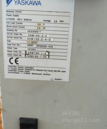 2、安川机器人DX100,2010年产,日本原装进口。型号HP0020D-E02,三相400V供电,功率2kVA。带原装控制柜和示教器。适合工业自动化生产线使用。 4万