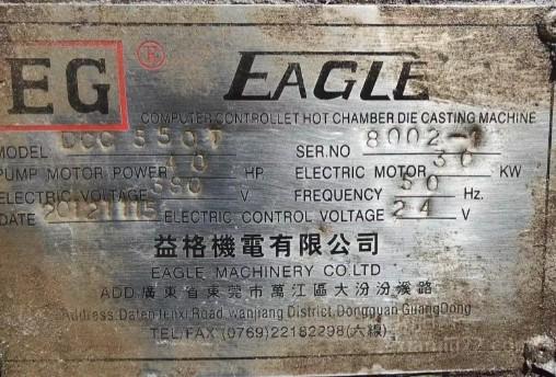 益格机电DCC550T热室压铸机,2012年11月产,40马力泵电机,30千瓦电控电机,50赫兹频率
