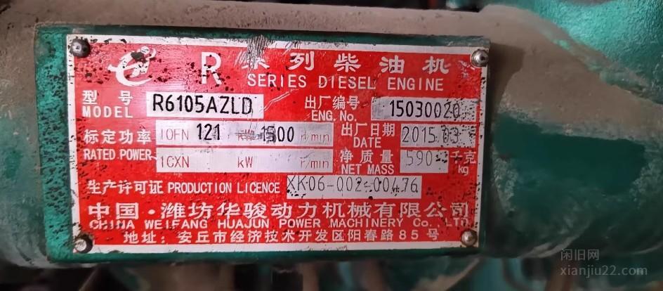 个人一手潍柴R6105AZLD柴油发电机,121千瓦,成色八九成新。潍柴发动机加天鸿电机,性能稳定,交流电输出,电启动方便。因为不再需要,所以低价出手。有兴趣的朋友可以联系我,支持看货哦~