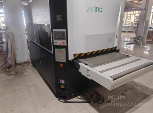 广东林丰M5异形白胚底漆砂光机,1米宽台面,9.9新!整机接近3吨,五道轴独立升降,触摸屏控制。