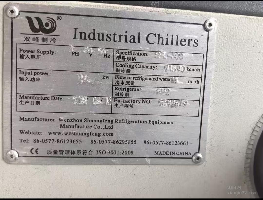 __冷水机一台转让,出冷水机一台,功率太大 现有机器用不上了 使用一年多 9成新,价格电议5万 有意者电联!