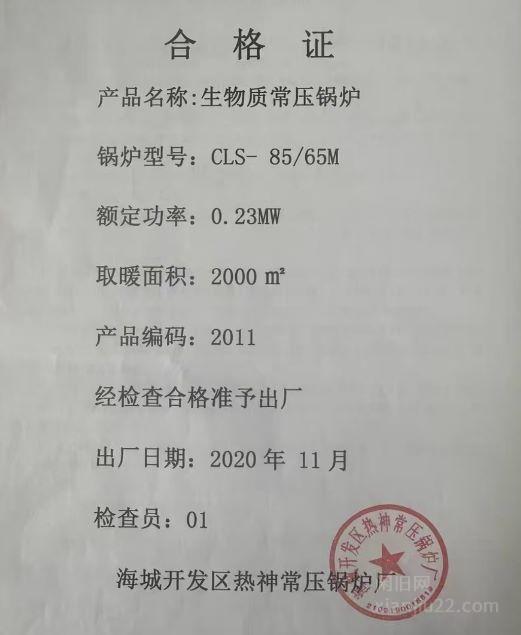 出售一台生物质锅炉,锅炉质量非常好。价格14000元。可议价