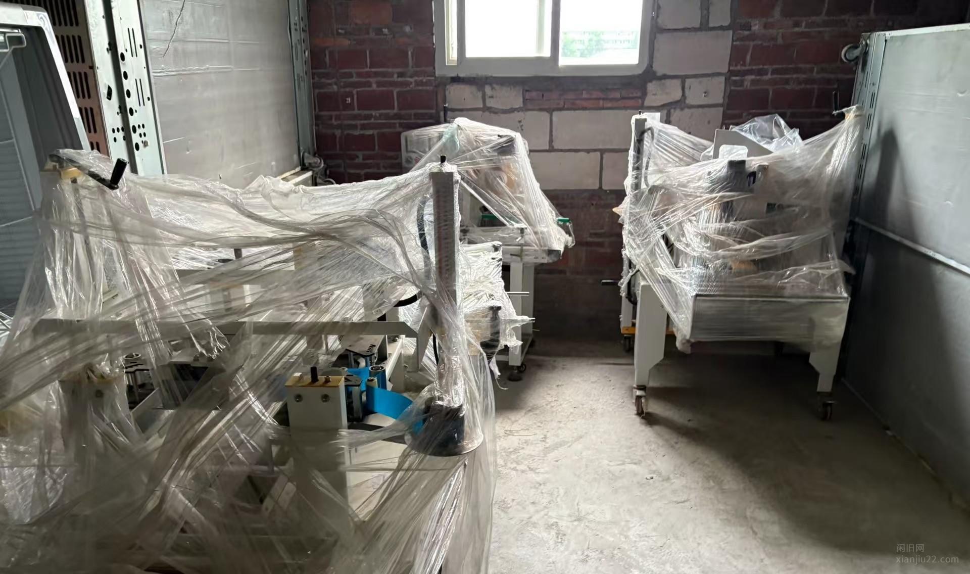 封泡沫箱打包机(两组封箱机+一组贴标机+一组转变方向机) 几乎全新 只用了两个月的机器