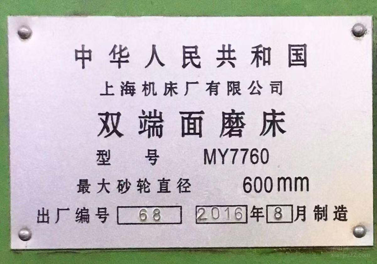 MY7760型16年上海机床7760双端面磨床一台,武汉现货供应16年上海机床7760双端面磨床一台,试机丝滑,价格美丽,欢迎选购。 有意者电联!