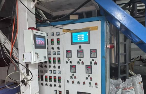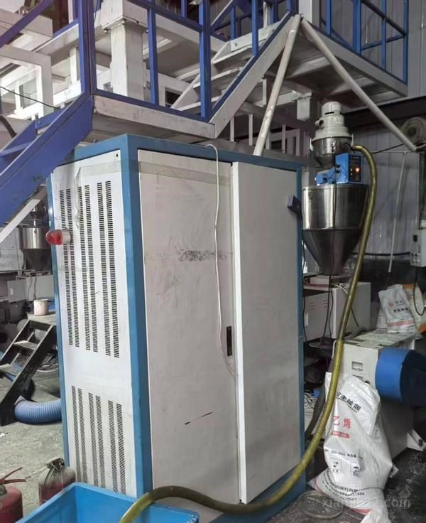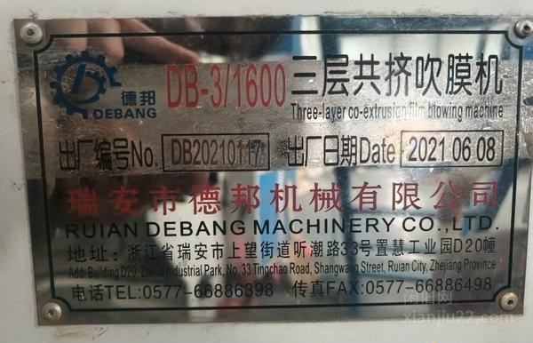 低价出售2022浙江德邦产1600三层共挤吹膜机一台,主电机37/22/22个千瓦,250ABC磨口旋转磨头双收卷,纠边机米克重吸料机电晕机色母机全,用到的老板速联系