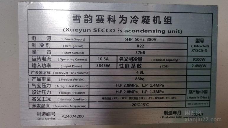 出手个人一手冷库长7米4宽4米2 高2.5米 5匹 可保鲜 可冷冻 用不到一年有意者电联