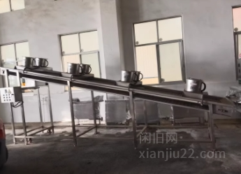 炸锅是1.3米宽9米长网带链条,传送带是7米长1.2米宽带8个散热电机风扇。一个配电柜,四个油炸过滤泵。