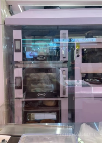 unox触摸屏4盘*2 热风炉、kolb高比双层4盘蒸汽石板烤炉、高比8盘醒发箱、新麦打面机、新麦开酥机、三麦炸炉、艾世铭制冰机、汇麦插盘冷藏冷冻冰箱各两台一共四台、若干烤盘、烤盘车4台、料理机2台!冷藏玻璃展示冰柜3台、