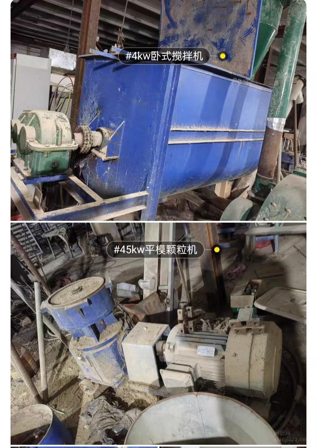 -一整套饲料加工机组,一整套饲料加工机组,满负荷约110kw,其中1台45kw平模颗粒机,1台30kw沙克龙粉碎机,2太1.5kw带减速器的斗式提升机,2台3kw螺旋提升机,1台4+0.75kw的冷却机,1台定量称重机,1台立式封包机,1台3米传送带,1个200kw控制柜,1个100kw星三角降压启动柜,200米4*120国标电缆线 有意者电联!