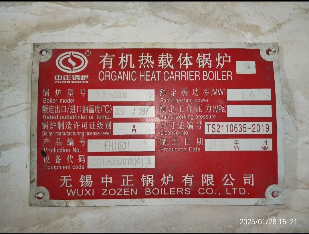 YLM-6000M型18年7月无锡中正有机热载体锅炉,湖南邵阳市邵东县手套厂有一台2018年7月无锡中正YLM-6000M有机热载体锅炉处理,还有一些配套,一起18万,感兴趣的欢迎来聊。 有意者电联!