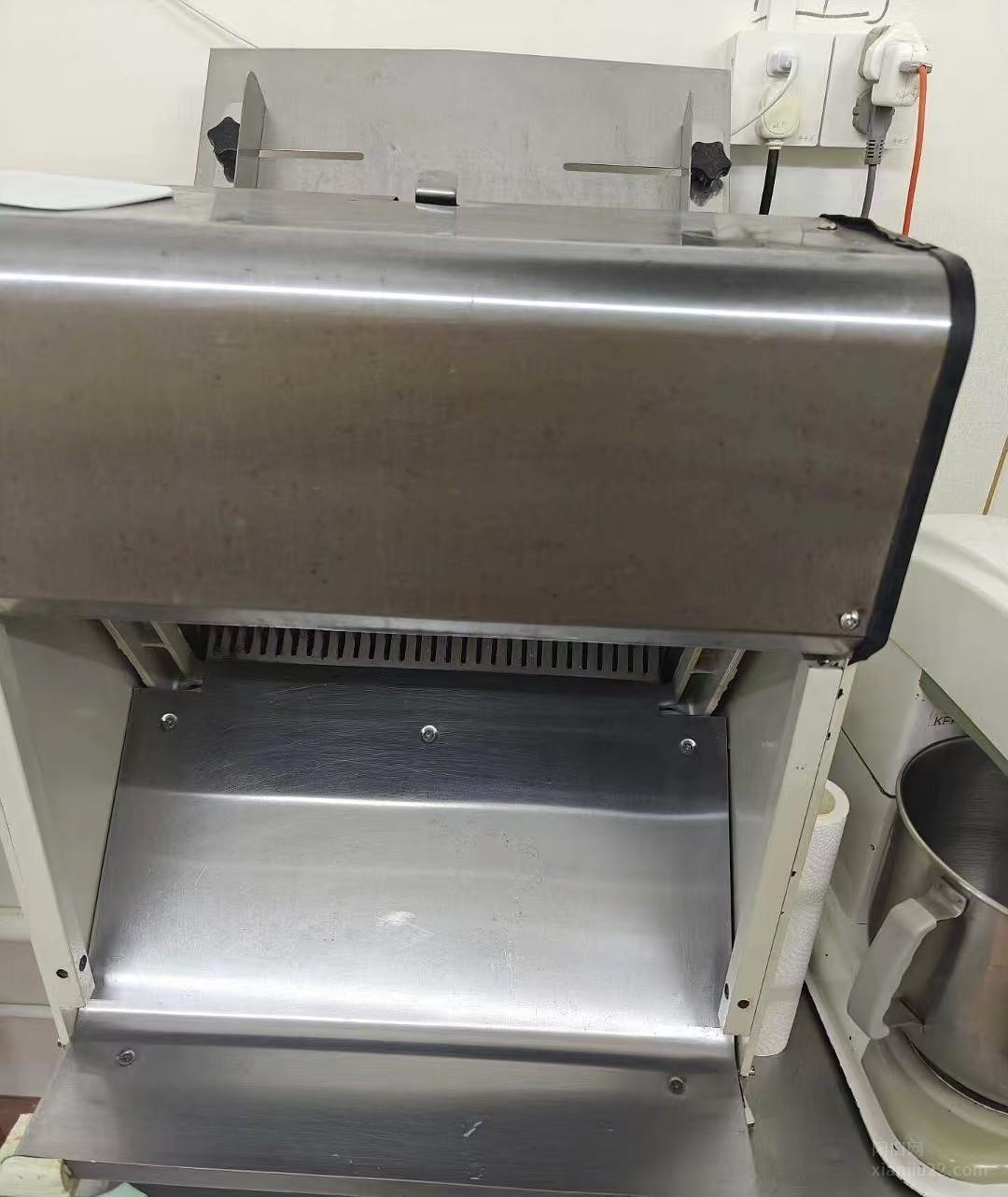 机器有烤炉,自动醒发箱,打蛋器,厨师机,4门冷冻冰箱,操作台冰箱,打面机,车架2台,制冰机一台,水槽两个,操作台2个,放水的冰箱一台,烤盘60个,切片机,展示柜3个两个有加温的,收银机一台