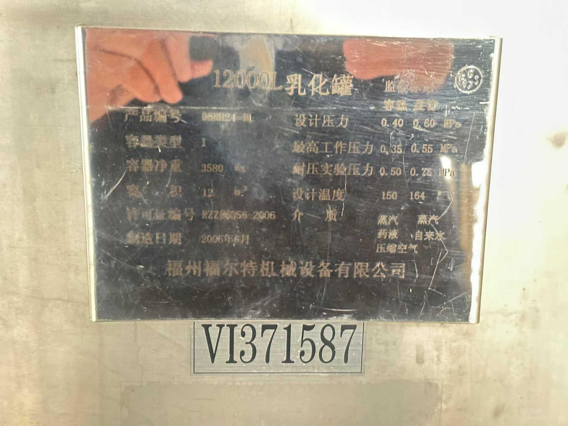_12000L乳化罐出售, 有意者电联!