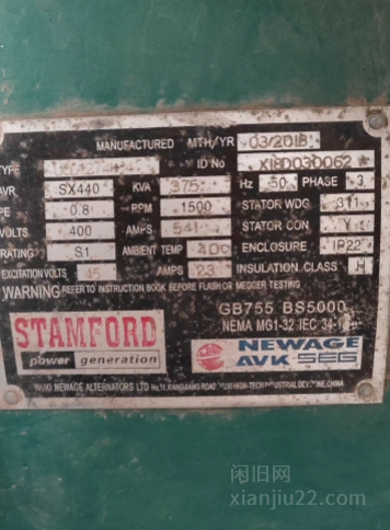 斯坦福发电机,可发电200KW。发动机在浑南祥瑞工业园。