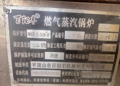 百阳丰燃气蒸汽锅炉,0.25t/h,0.09MPa,2019年11月产,B级,