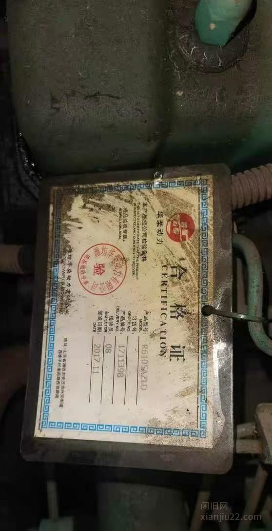 潍柴HC系列柴油发电机组,型号R6105AZLD,额定功率121kW,出厂日期2017年11月。机器带合格证,功能正常,适合工厂、工地、备用电源等场所使用。机器有使用痕迹,成色还可以,具体细节见图。