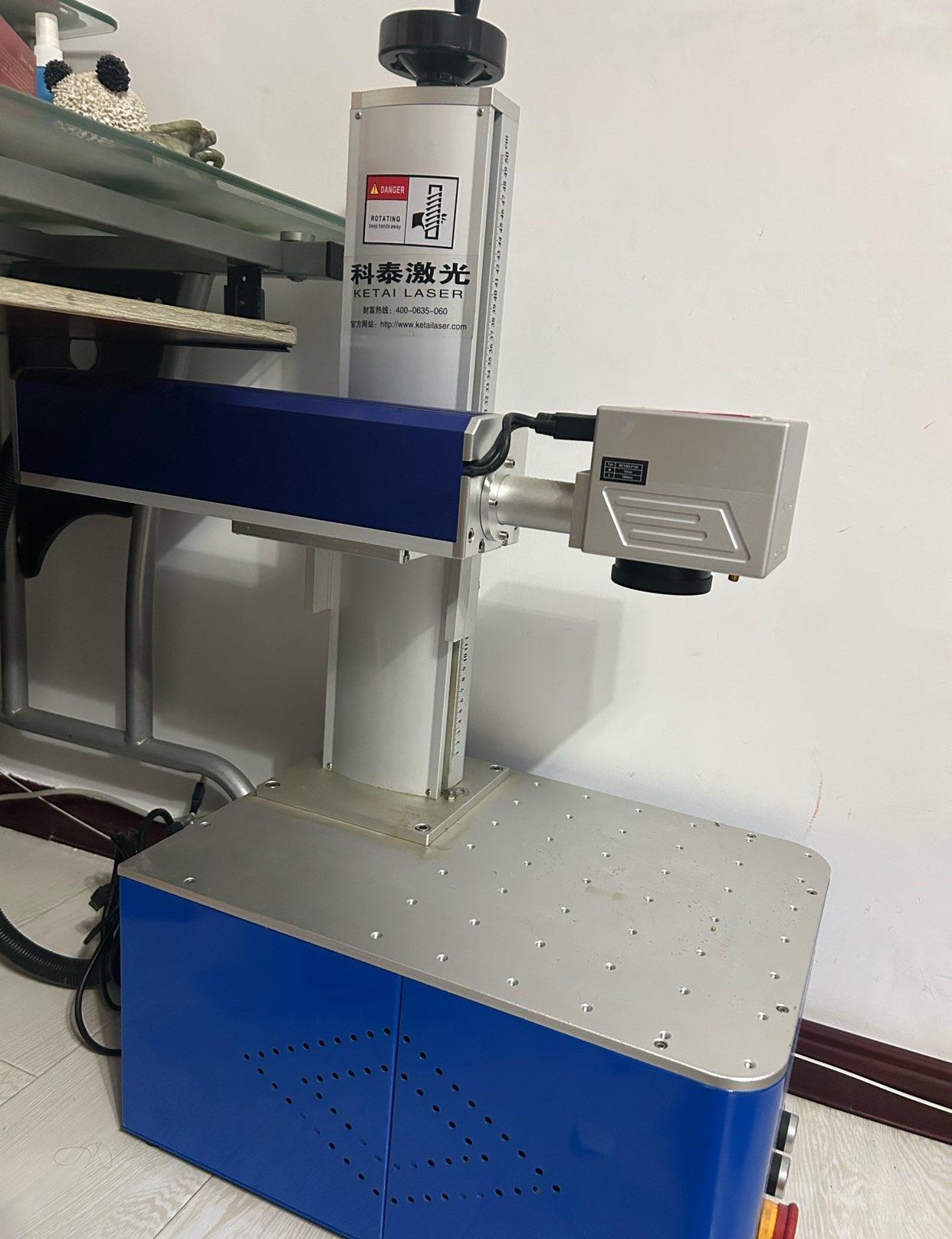 科泰激光打标机,成色还可以,功能正常,带保护罩,操作简单,适合五金、塑料、金属打标用机器有点使用痕迹,具体参数看图,支持自提,不邮寄。