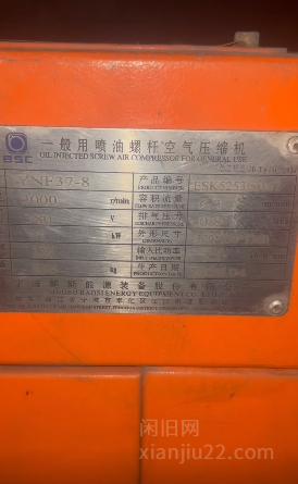 出一台鲍斯螺杆空压机,型号YMF37-8,37kw,0.8MPa压力,2020年4月产。