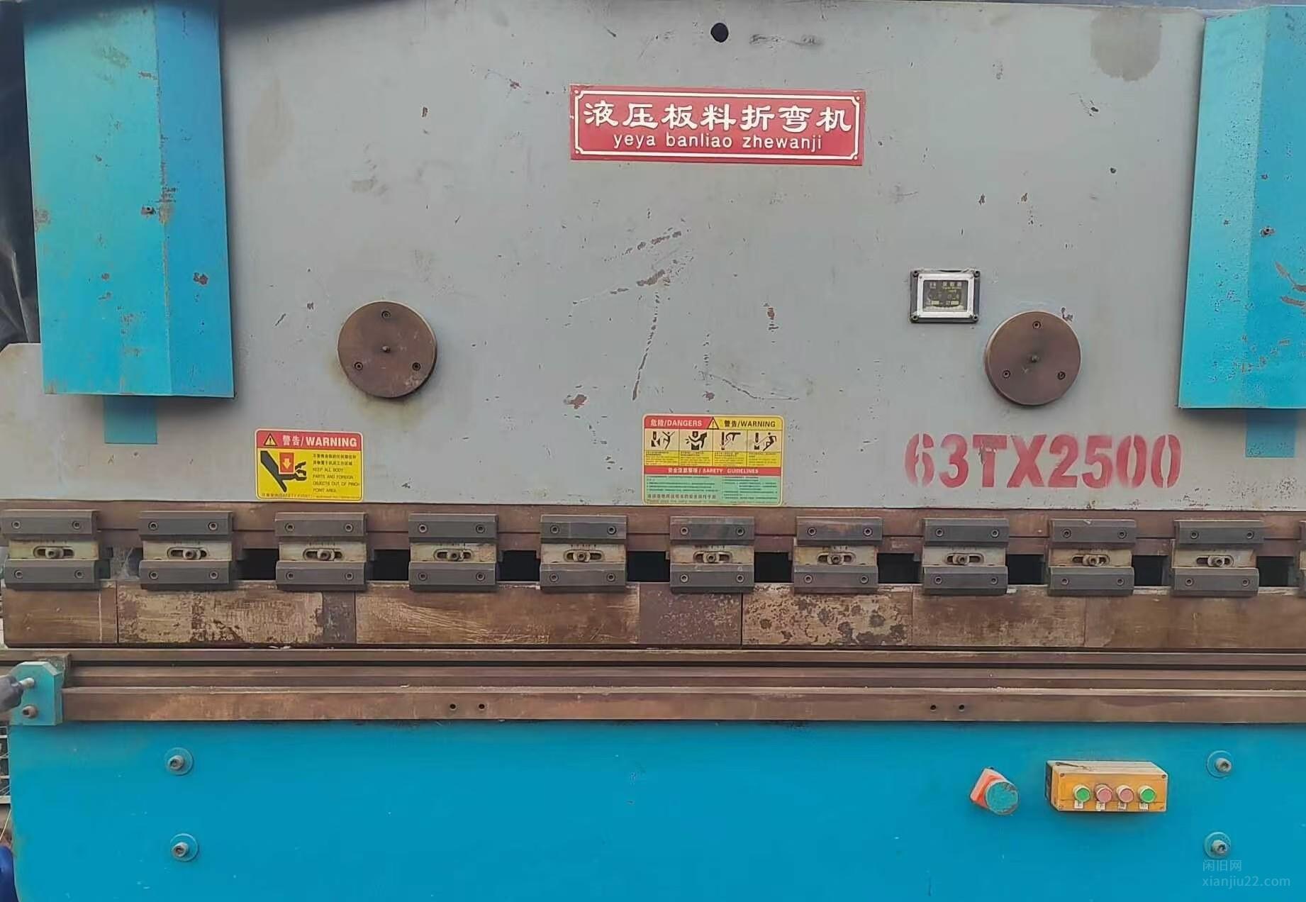 63TX2500液压板料折弯机,蓝色机身,带配电柜,液压系统正常,电气系统没问题,直接接电就能用。模具齐全,适合金属板材折弯加工,成色还可以,正常使用痕迹,功能都好使。