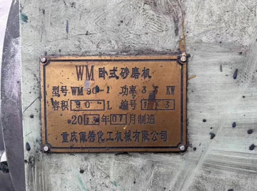 二手卧式砂磨机,型号WM90-1,容量90L,功率3.7KW,2013年重庆佩特化工机械公司制造。设备成色还可以,正常使用痕迹,功能完好,适合化工、涂料、颜料等行业湿法研磨使用。机器一直在室内存放,保养到位,运转正常。4台90L的,一台60L
