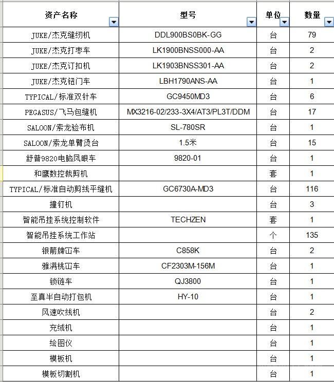 江西处理服装工厂设备,79台杰克缝纫机,116台标准自动剪线平缝机,17台PEGASUS/飞马包缝机2台杰克打枣车 6台TYPICAL/标准双针车 有清单 有意者电联!