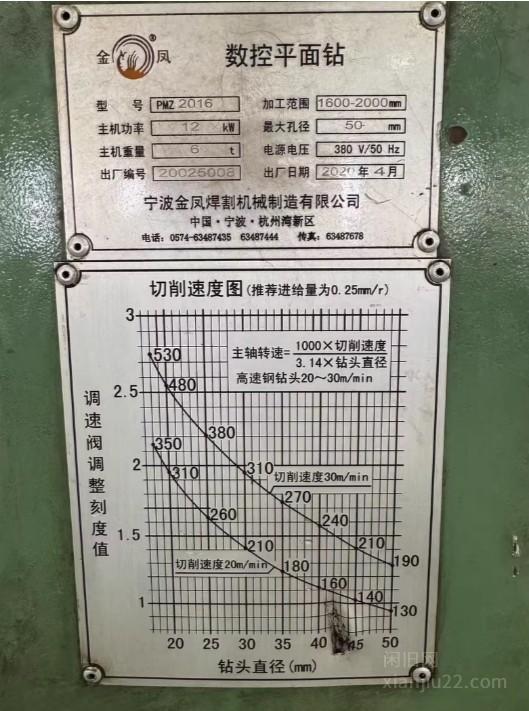 1、金凤数控平面钻,型号PMZ2016,12KW主机,最大孔径50mm,加工范围1600-2000mm 宁波金凤焊割机械制造有限公司出品,2020年4月出厂,功能正常,现场可试机 适合工厂加工用,配件齐全 3.2万