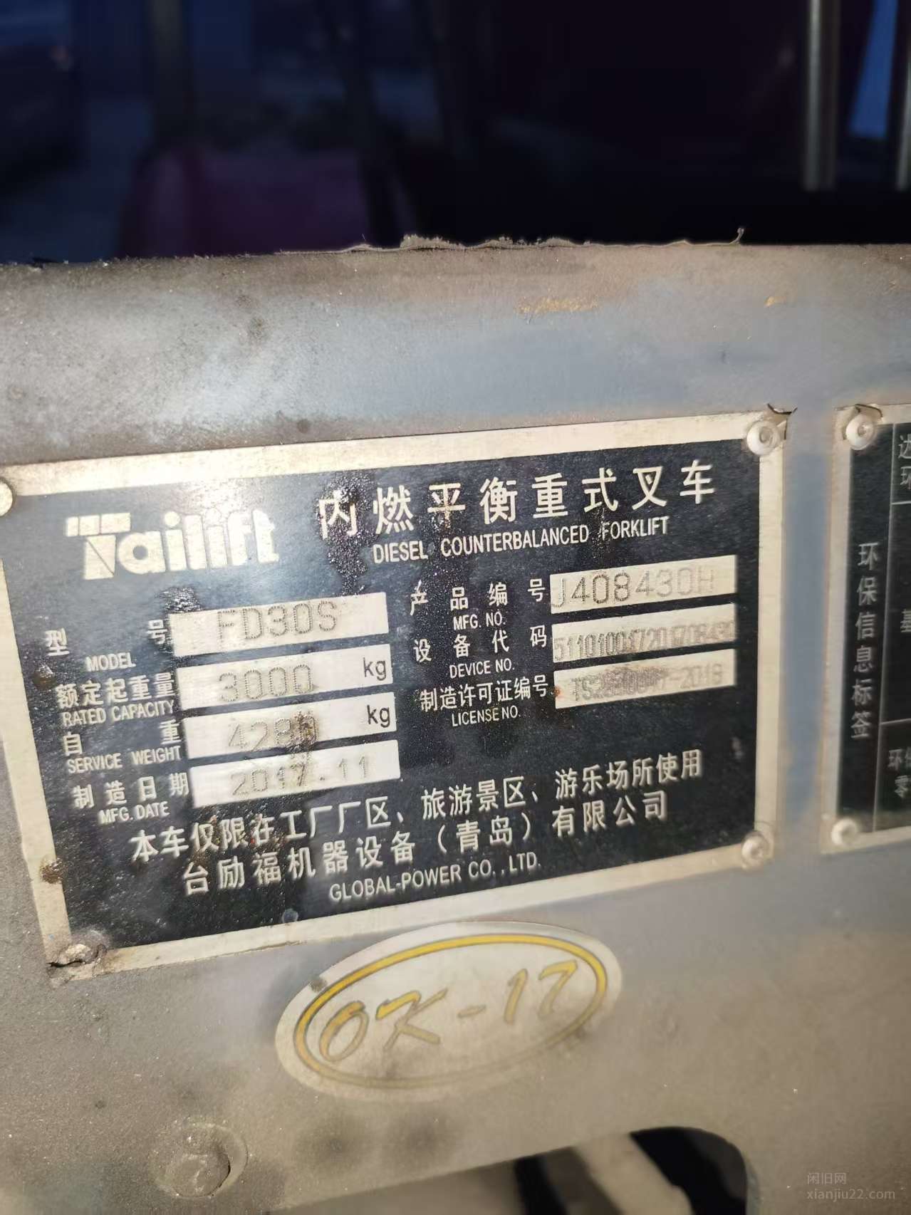 出售一台17年台历福3吨叉车,升高三米的。使用时长1900个小时。车一点问题没有,正常工作,打火就着。
