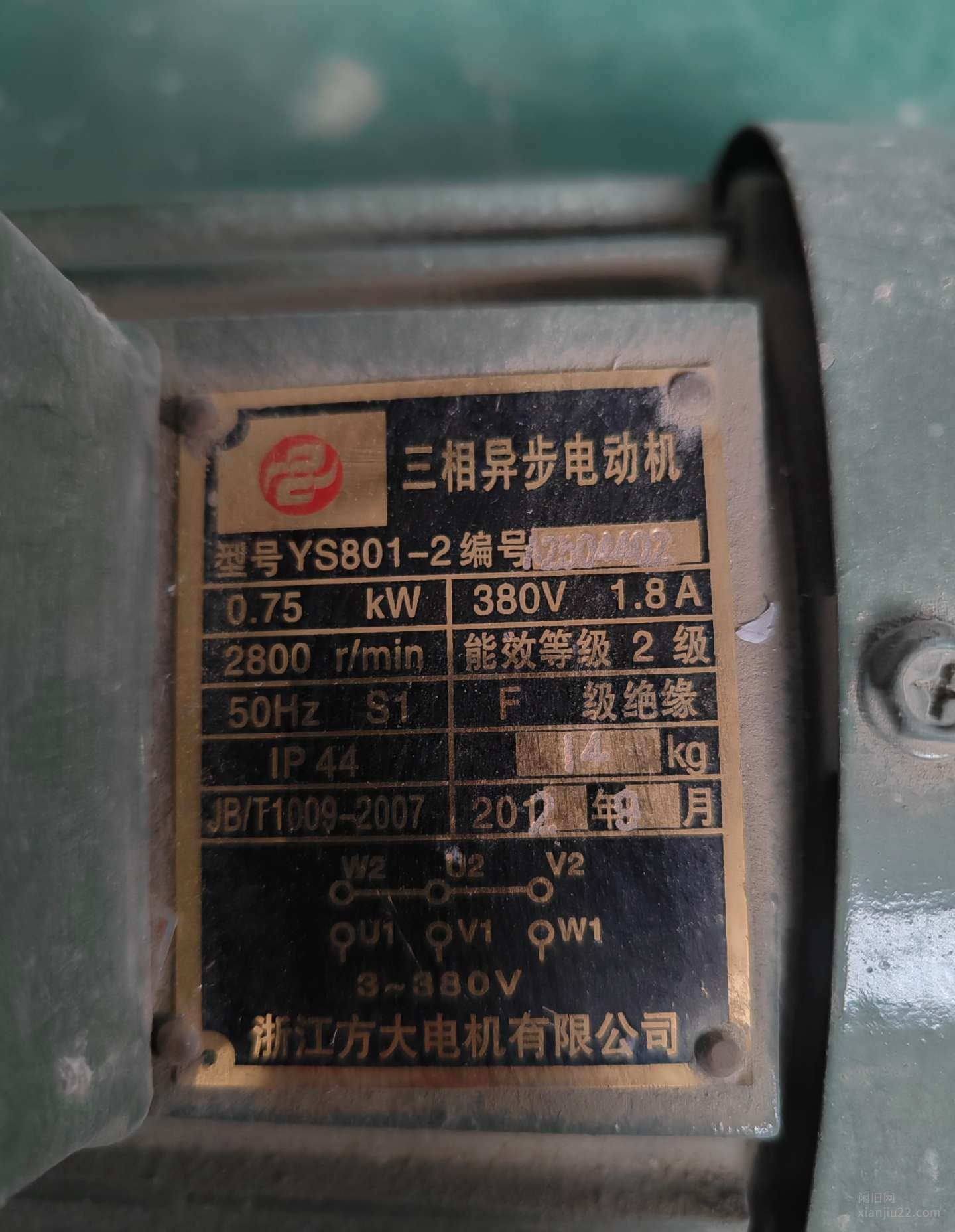 详细描述:出售二手三相电机两台,0.75KW,转速2800.轴径19毫米,价格150一台