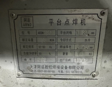 阿诺平台点焊机,型号ARDN-80,额定容量80KVA,水冷冷却,焊接厚度25mm,重780kg。