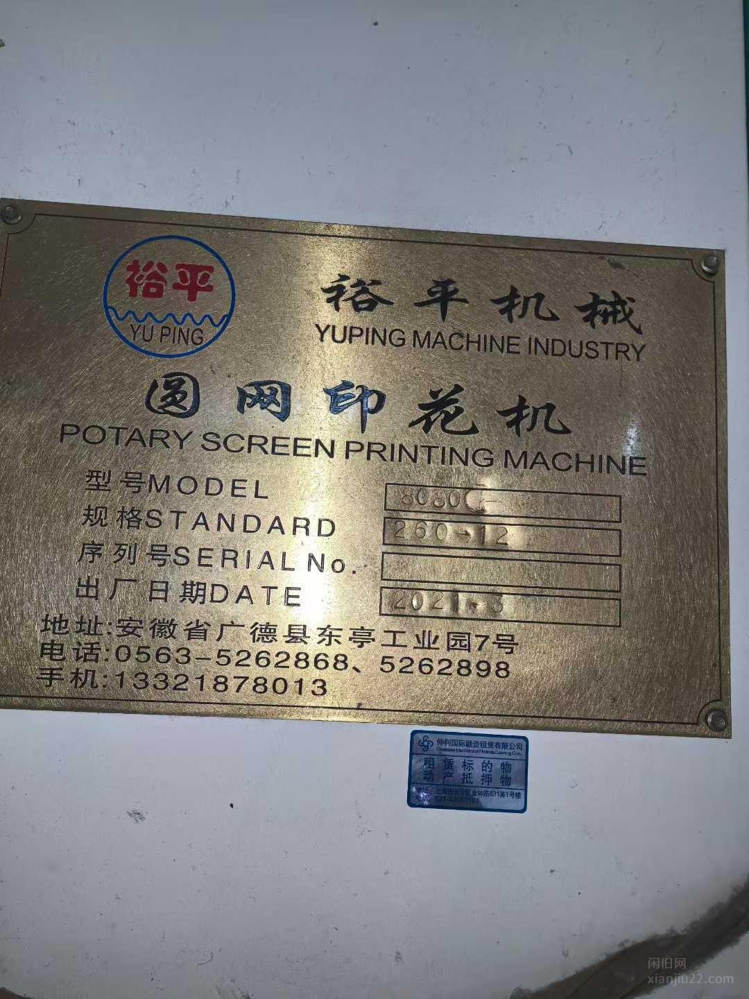 _出售2021年2米6门幅裕平圆网印花机,出售2021年2米6门幅裕平圆网印花机!十二套色!六节七层网带烘房!!配套蒸花机一台 有意者电联!