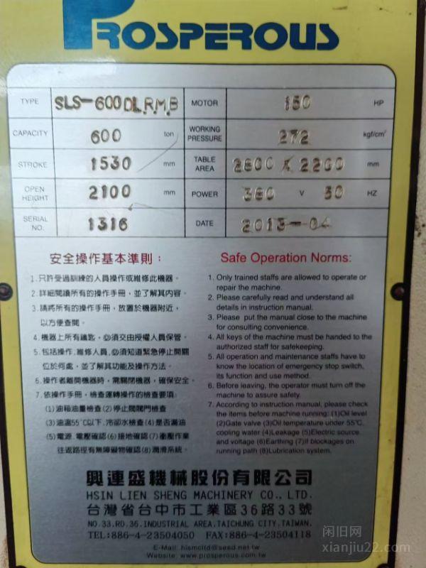 出售4台台湾厂兴盛达的油压机SLS-12000型 600型两台和800型 一台