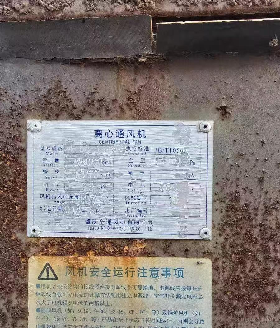 4-68-11离心通风机,配75kW电机。动力强劲,运行稳定。设备闲置,低价出售。