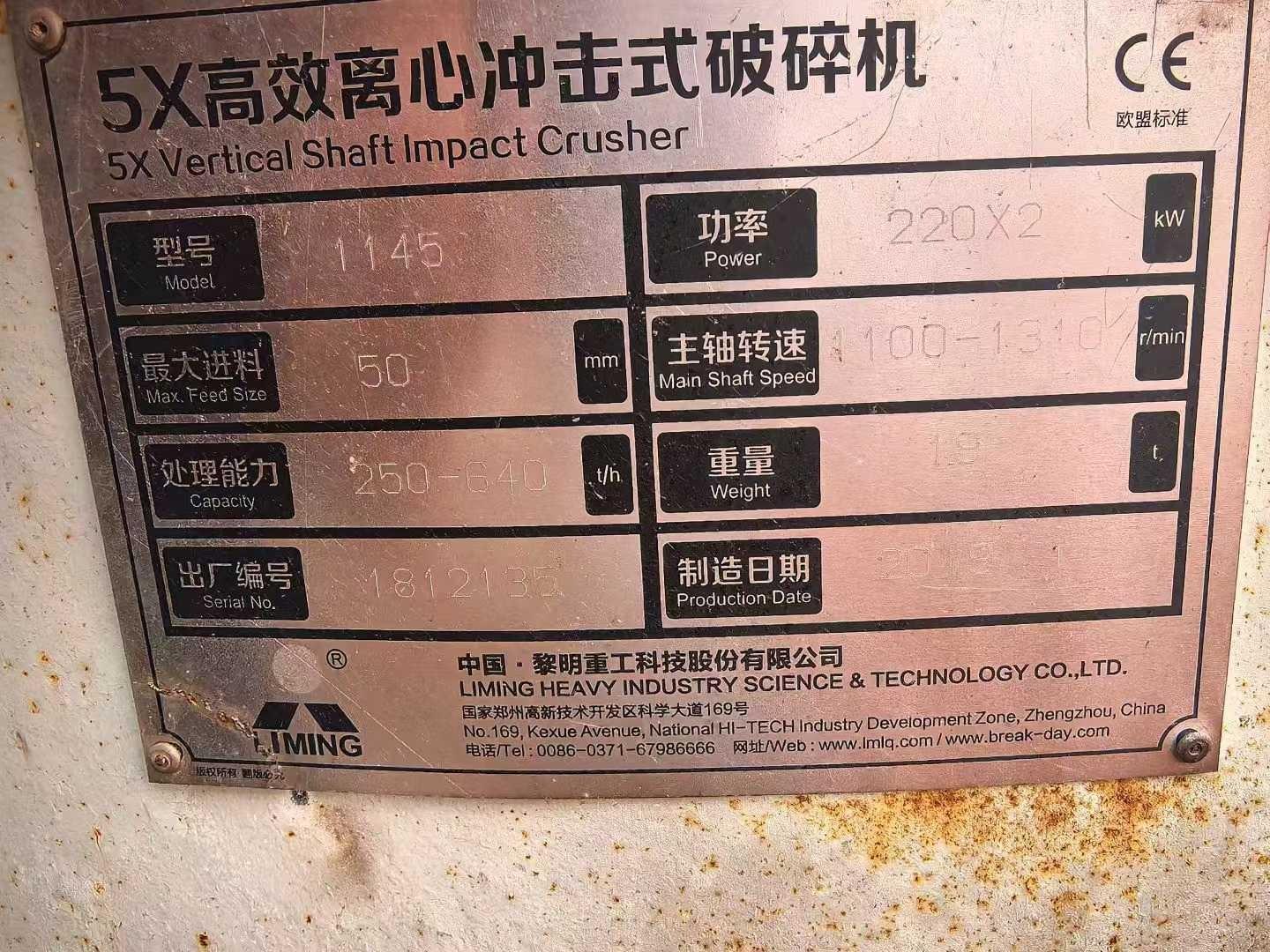 1145黎明重工5X高效离心冲击式破碎机同款两台,河北现货供应黎明重工1145型5X高效离心冲击式破碎机同款两台,九成新品质,欢迎选购。 有意者电联!