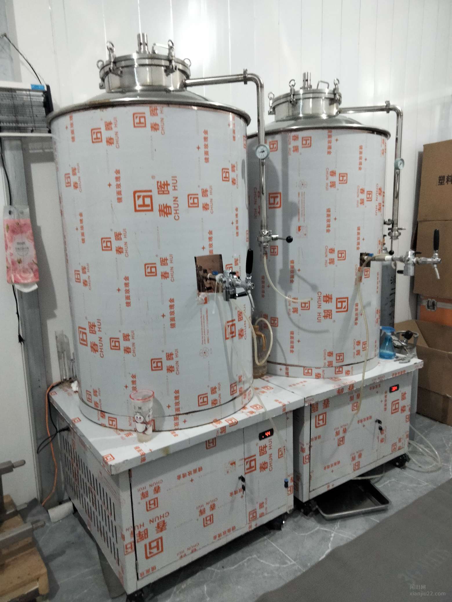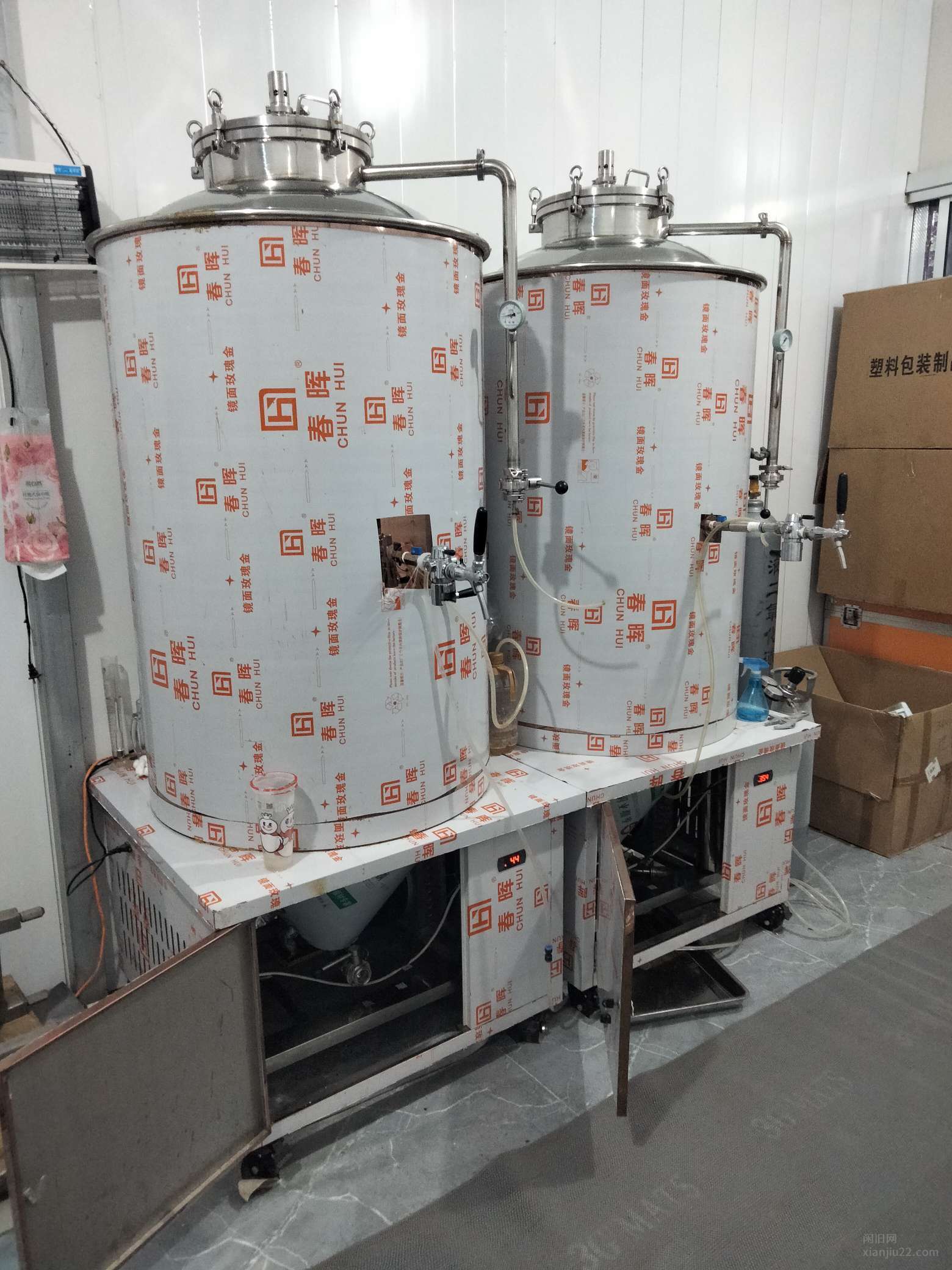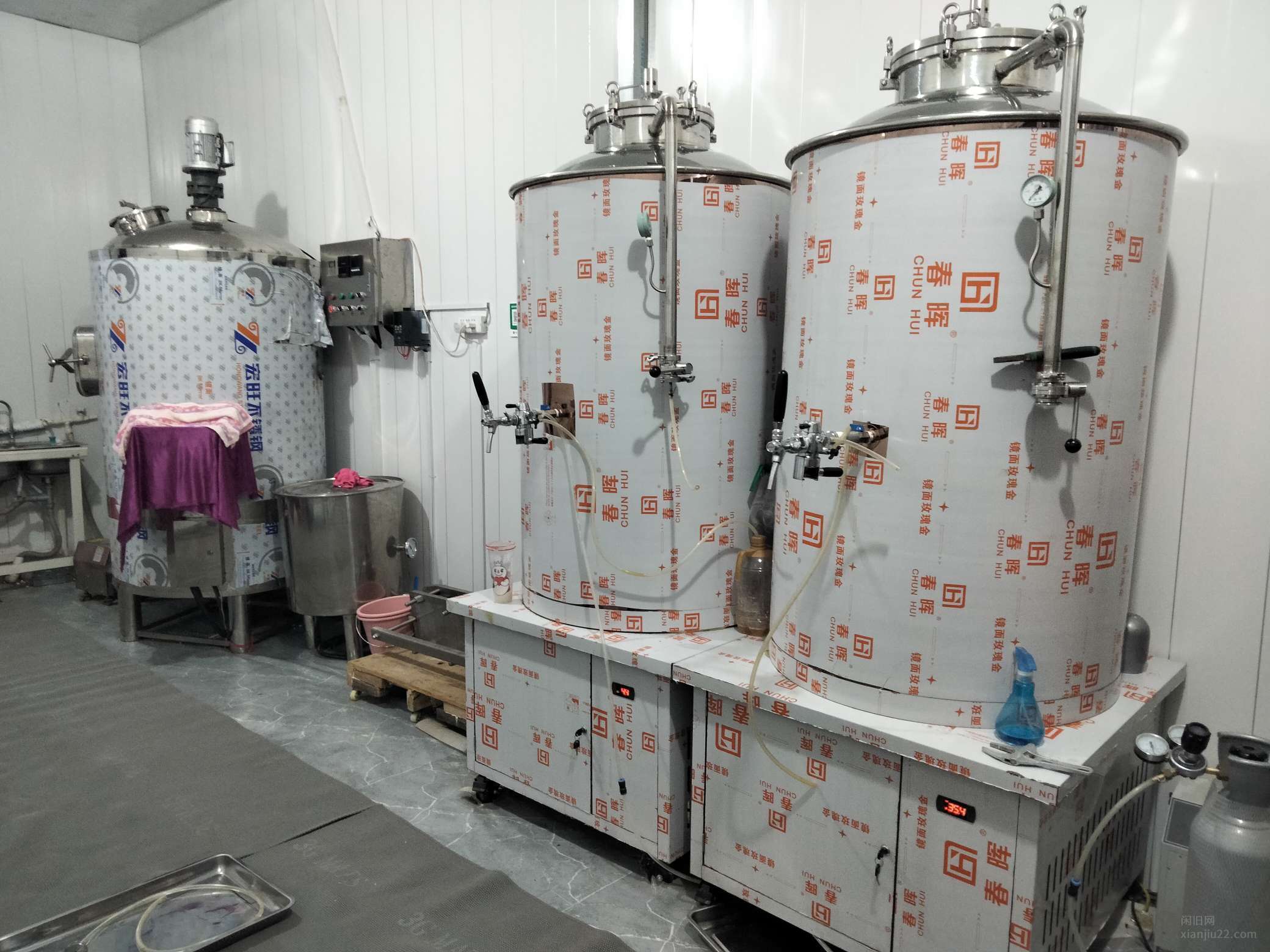 500升一体机设备 一拖二 带耕刀 板式换热器 食品管 粉碎机 净水过滤系统 扎啤桶全套18800024年的设备膜还没撕呢,带净水过滤系统 ,粉碎机,发酵罐,糖化罐,烧水罐,配电箱,设备齐全,零配件齐全正常使用,因干着其他行业,便宜处理包括:一个500升糖化罐,两个500升的发酵罐,一个烧水罐,一个粉碎机,一个等压罐装器,两个二氧化碳罐,一个氧气罐,两个飞马酒头,一个糖度计,一个配电箱,两个装麦芽大不锈钢盆,一套净水过滤系统,10升扎啤保温桶20个,也可单买