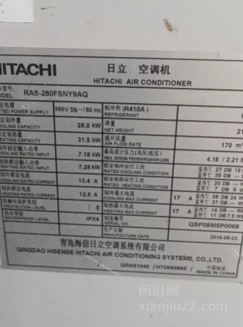 日立中央空调一拖五,4个风管机1个天井机,风管机有40的,50的。天井机100的,