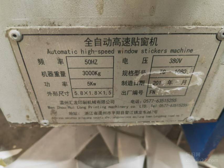 贴窗机,温州汇龙2021年1080型全自动高速贴窗机,5KW电机,380V电压,机器成色还可以,功能正常,适合贴窗、覆膜等生产用。