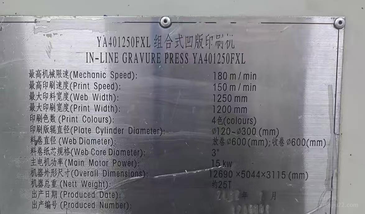 1250四色印刷机,科塞套色,带一组压平组,