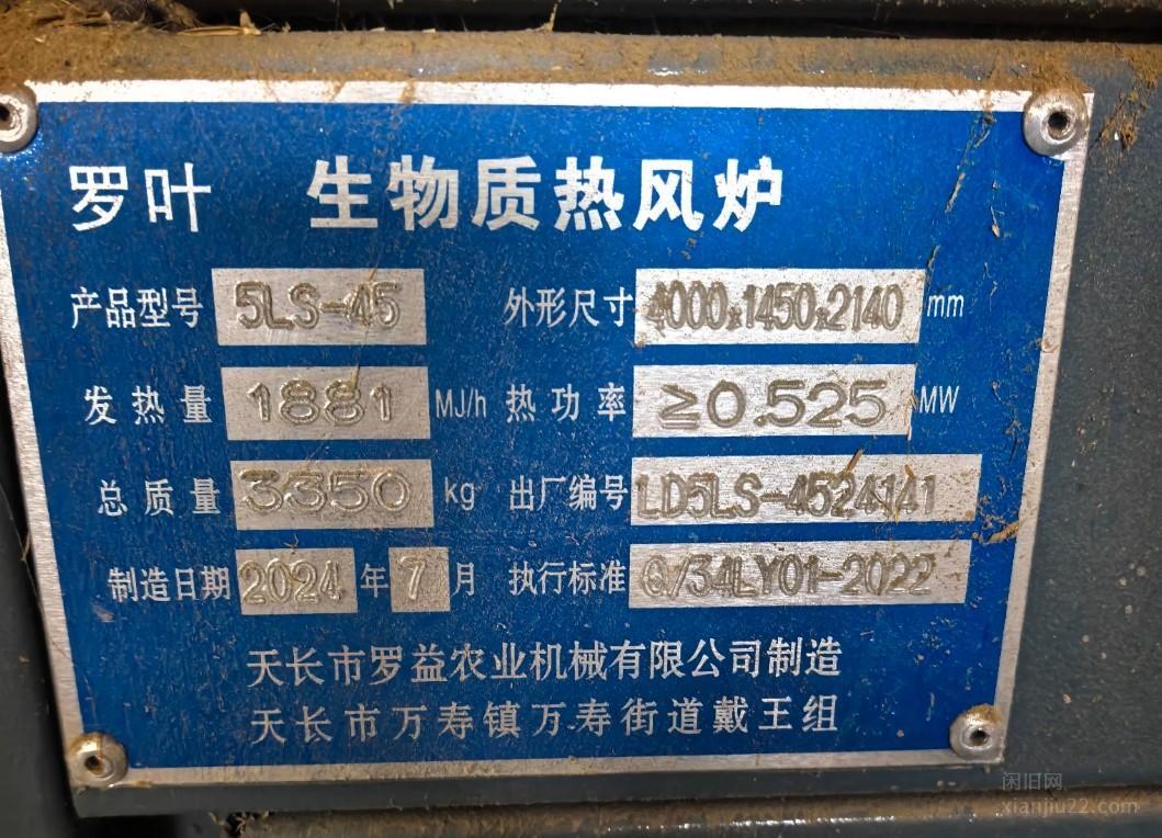 2、几乎全新罗叶5LS-45型生物质热风炉,2024年7月出厂,设备保存很好,功能正常,热功率大,适合工厂、农业机械用。