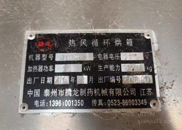 腾龙热风循环烘箱两门两车2014年出厂,18kw电加热,380V,带盖子,盘子齐全生产能力120kg