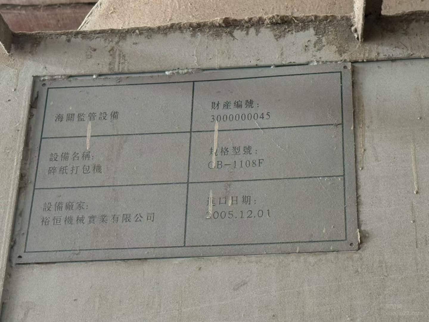整厂拆迁商出售2005年裕恒1108碎纸打包机一台,江苏苏州出在正在使用中的2005年裕恒1108碎纸打包机一台,有用得上的联系。 有意者电联!